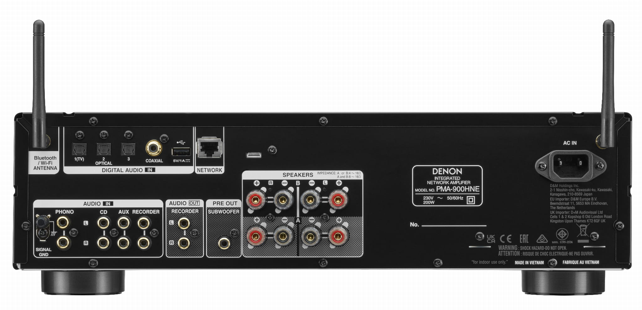 Łączność obejmuje wejście Phono na gramofony z wkładkami MM i MC, terminale głośnikowe A/B, wyjście przedwzmacniacza subwoofera, optyczne i koaksjalne wejścia cyfrowe do integracji dźwięku z telewizora i odtwarzacza multimedialnego, a także bezprzewodowe odtwarzanie dźwięku w całym domu za pośrednictwem technologii HEOS® Built-In. Popraw swoje wrażenia słuchowe z dowolnego źródła dzięki PMA900HN.