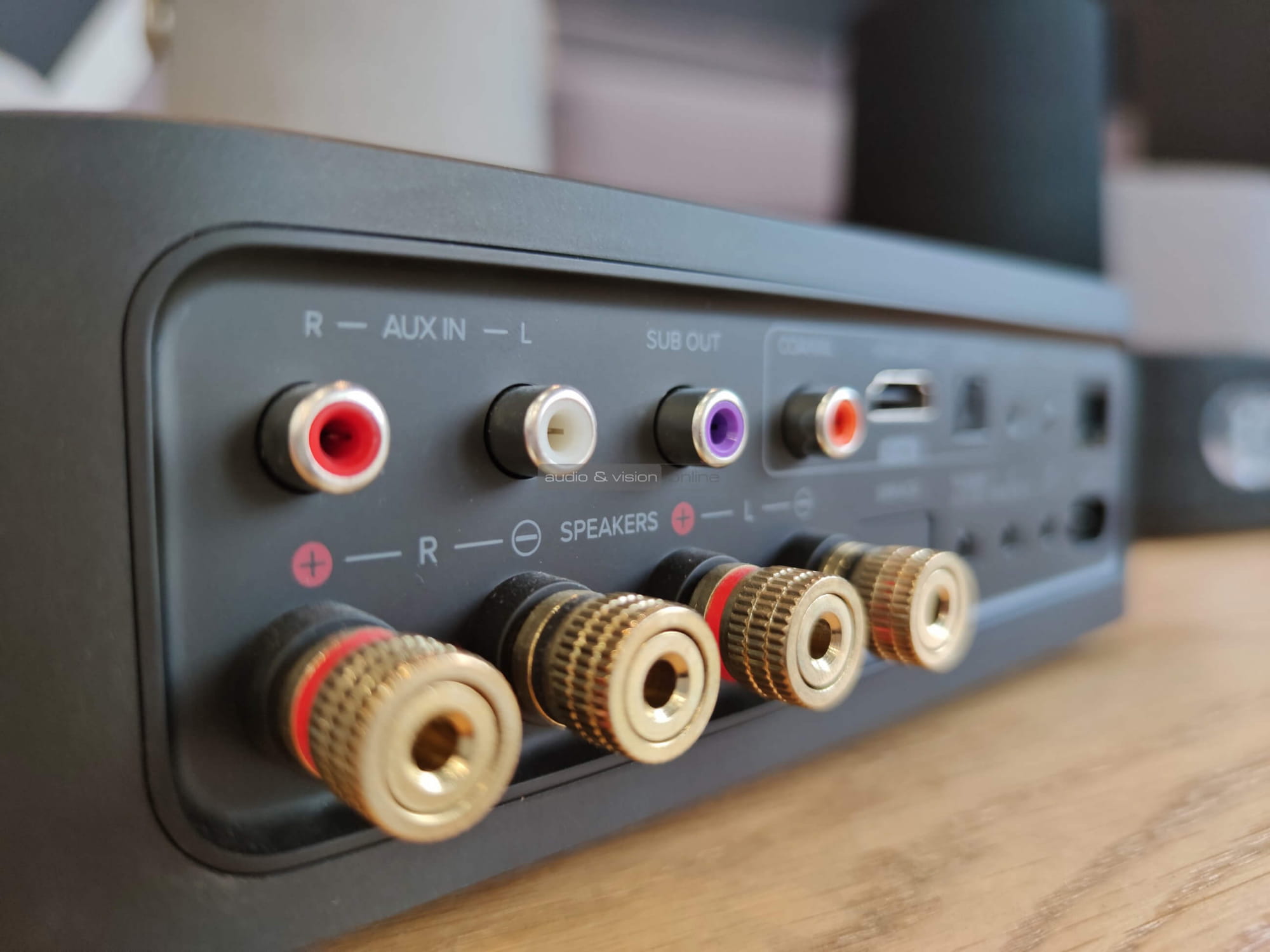 - Wyjścia audio: 1 wyjście liniowe, 1 wyjście subwoofera