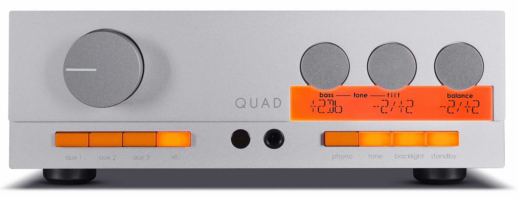 Opracowana przez założyciela QUAD, legendarnego Petera Walkera, kontrola Tilt jest rozwiązaniem o jakości audiofilskiej do regulacji charakterystyki. Jej konstrukcja wynika z przekonania, że tradycyjne sterowanie tonem i korektorem jest niewystarczająca i niezdarna podczas regulacji równowagi tonalnej.