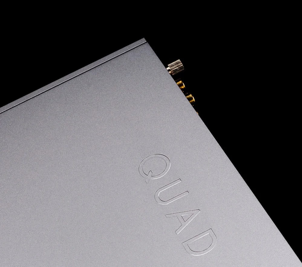 QUAD 33 ma wyrazistą i czystą estetykę, która przywołuje przeszłość QUAD, ale jednocześnie jest osadzona we współczesności z futurystycznym akcentem. Obudowa jest sztywna i emanuje jakością. Wykończenie końcowe jest precyzyjne, podobnie jak ścieżka sygnału audio. Anodowana i specjalnie obrobiona obudowa aluminiowa demonstruje jakość i poziom, na którym nowy QUAD 33 zostanie doceniony. Nie będąc już podatnym na pęknięcia, blaknięcie lub inne problemy związane z klasycznymi panelami przednimi, QUAD 33 jest gotowy na całe życie wydajności.