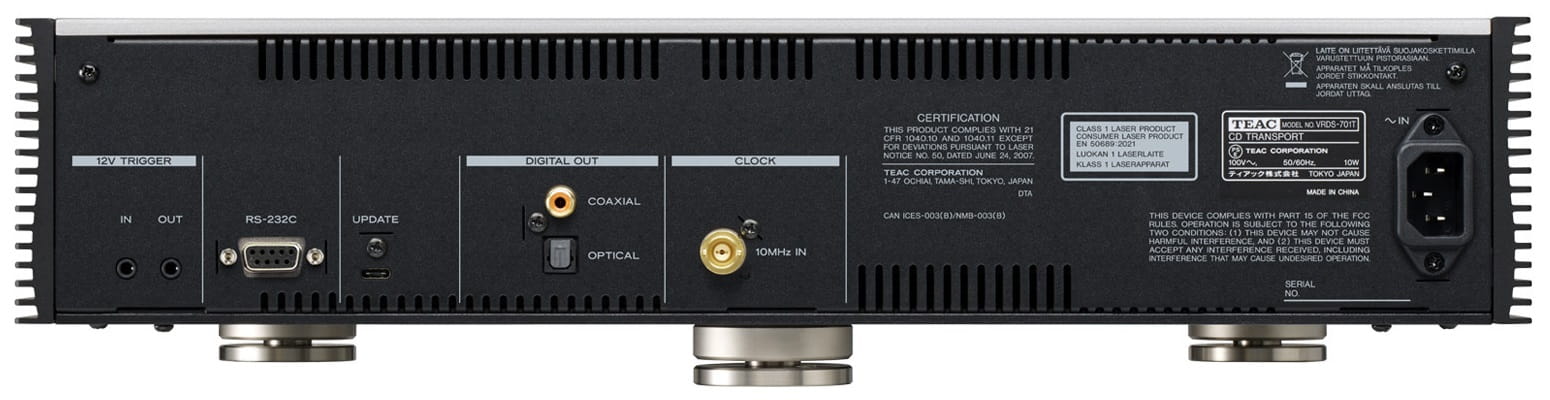 Transport CD VRDS-701T wykorzystuje nasz nowo opracowany mechanizm VRDS. VRDS to oryginalny mechanizm napędu CD firmy TEAC, który redukuje wibracje obrotowe i inne niepożądane wibracje poprzez przymocowanie płyty CD do aluminiowego gramofonu o tej samej średnicy, aby zmaksymalizować masę bezwładności. W połączeniu ze streamerem UD-701N, który również jest komponentem serii REFERENCE 700, możliwe jest odtwarzanie przy użyciu dyskretnego przetwornika DAC w UD-701N, a także przy pełnym dekodowaniu MQA. Oczywiście można go także używać razem z wybranym przez siebie przetwornikiem cyfrowo-analogowym i zbudować system według własnych upodobań. Dołączenie wejścia zegara 10 MHz umożliwia elastyczną integrację z systemami synchronizowanymi za pomocą zegara zewnętrznego.