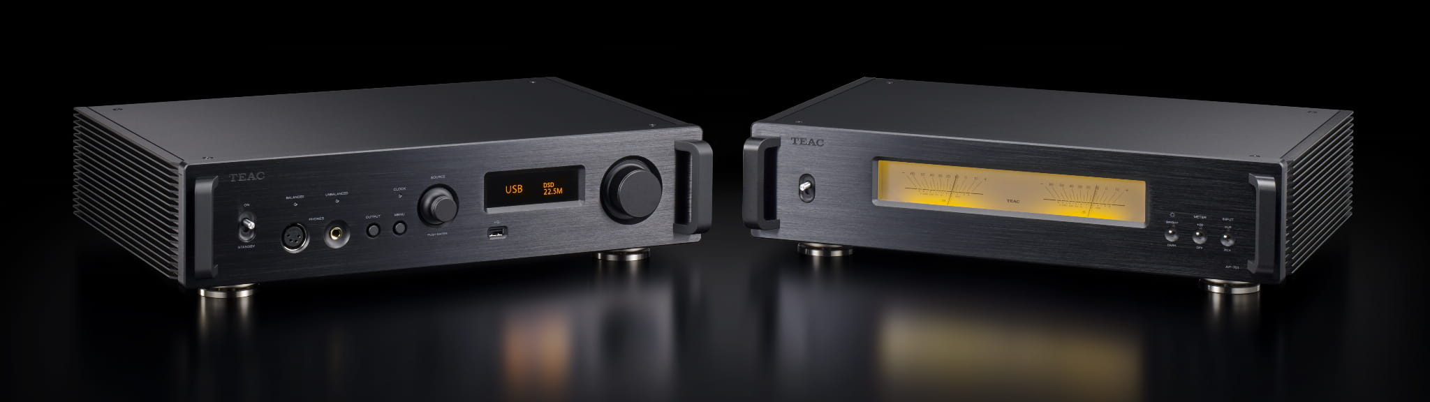 TEAC UD-701N + AP-701 wysokiej klasy zestaw stereo w arcypięknym, czarnym wykończeniu ze szczotkowanego aluminium.